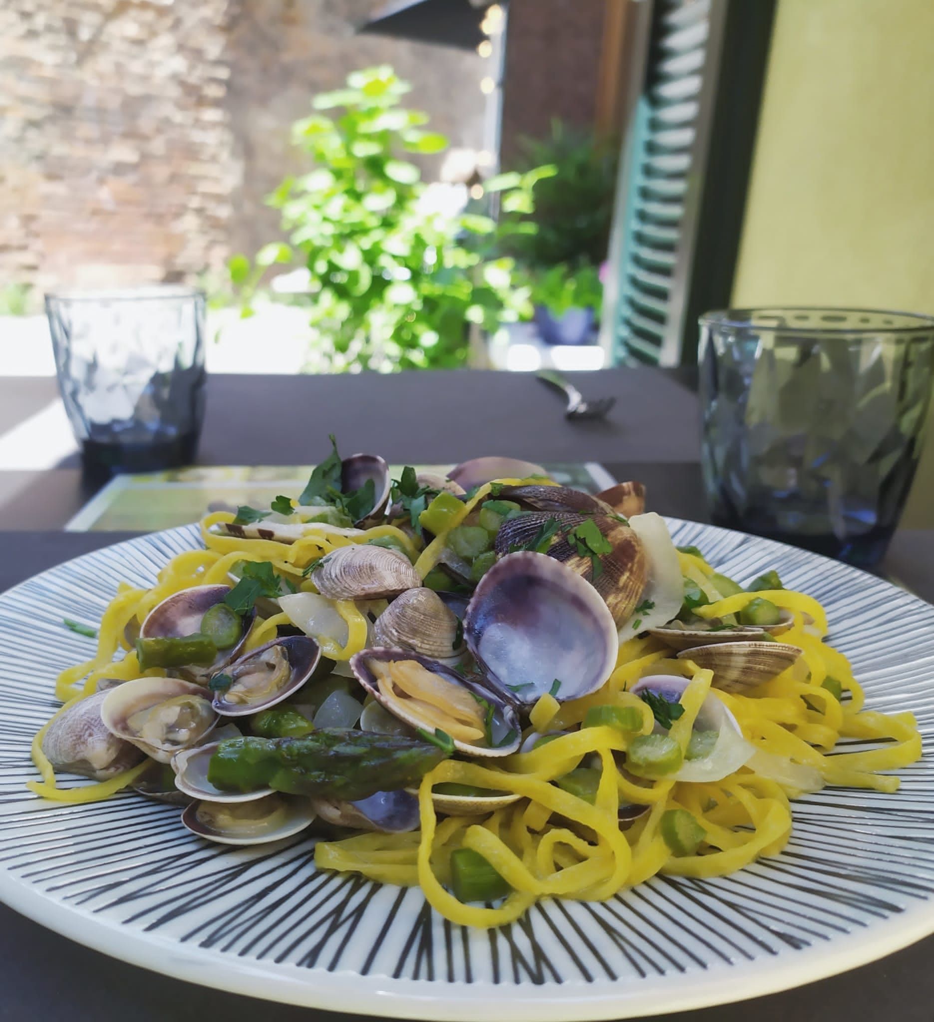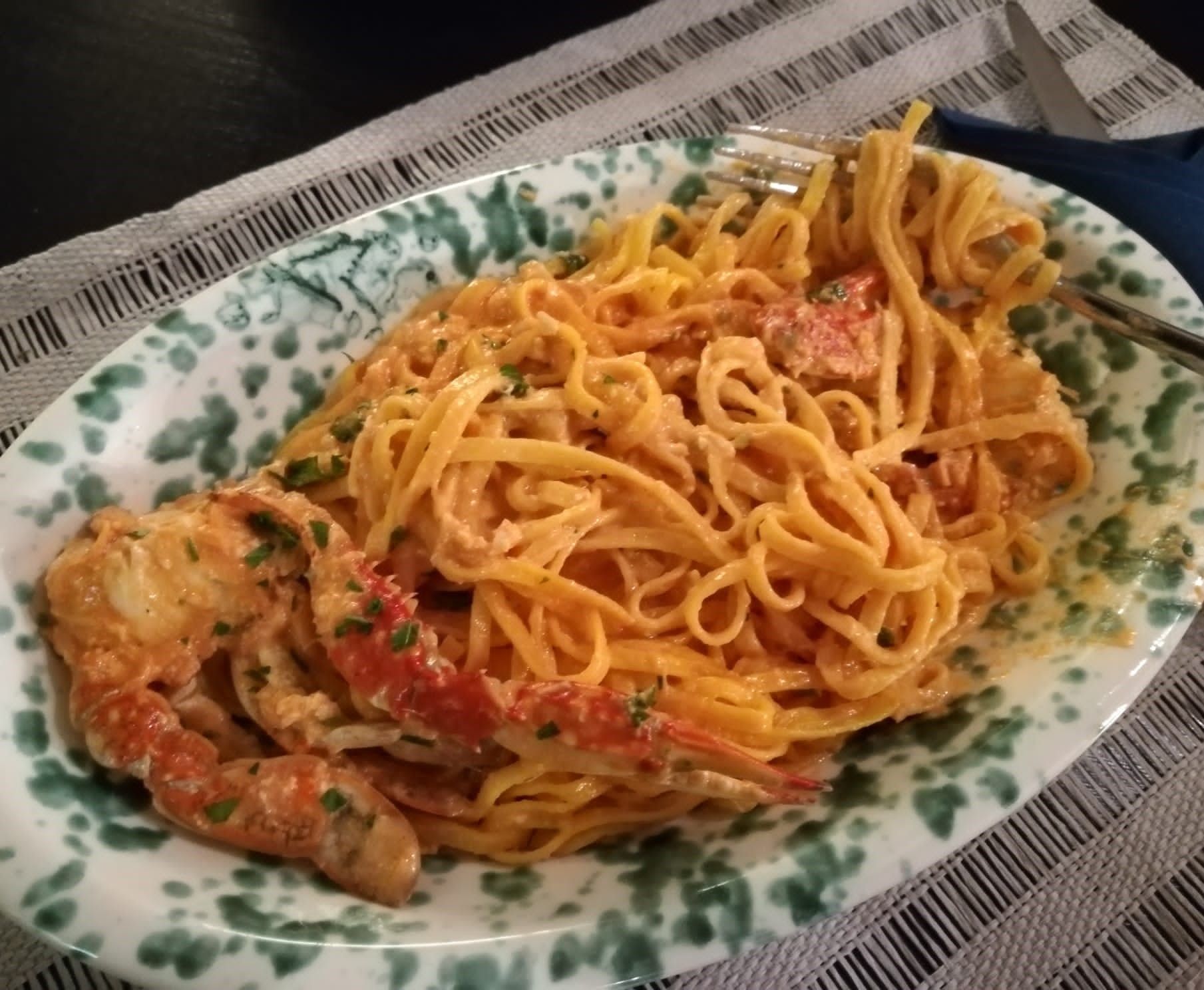 Crespella con Gamberi e Asparagi