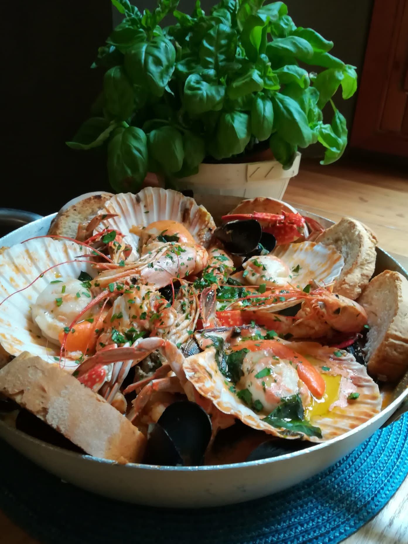 Capesante Gratinate e Carboncini di Gamberi e Porcini